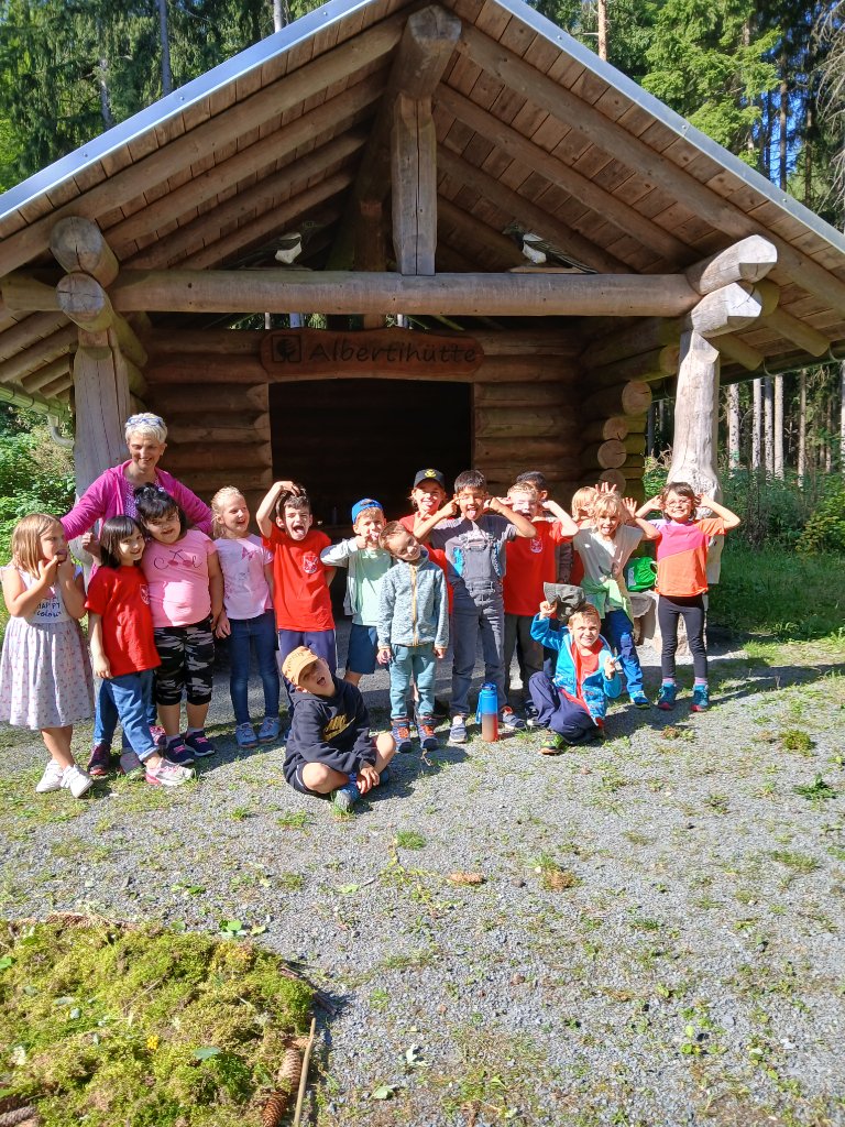 Am 20.08.2025 startete die Klasse 1a voller Vorfreude zu ihrem allerersten Wandertag. Wir machten uns auf den Weg, um Bad Elster und seine Umgebung zu erkunden. Auf dem Weg zum Wald lernten die Kinder wichtige Gebäude der Stadt kennen. Am Motorikpark machten wir Frühstückspause. Anschließend wagten sich die Kinder an die ersten Übungen im Motorikparcours. Der nächste Halt führte uns zum Spielplatz am Naturtheater. Dort konnten sich alle nach Herzenslust austoben. Zum Abschluss wanderten wir weiter zur Albertihütte. Inmitten der Natur gestalteten die Kinder mit Blättern, Zapfen, Steinen und Blüten wunderschöne Naturmandalas. Dabei entstanden kleine Kunstwerke, die zeigten, wie kreativ man mit Naturmaterialien sein kann. Müde, aber glücklich kehrten wir wieder zur Schule zurück. Der erste Wandertag der Klasse 1a war ein Tag voller Bewegung, Entdeckungen und gemeinsamer Erlebnisse, den die Kinder sicher noch lange in Erinnerung behalten werden.