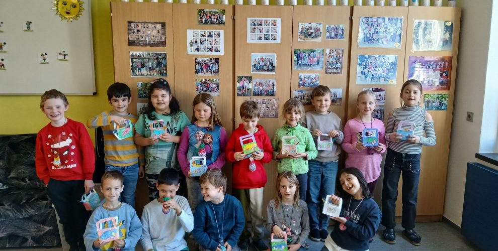 Die Überraschung folgte heute: Als die Kinder ihre Körbchen wieder in den Händen hielten, staunten sie nicht schlecht. Über Nacht waren diese nämlich gefüllt worden – darin befanden sich ein buntes Osterei im Eiernetz sowie ein kleiner Osterhase. Die Begeisterung war groß, und in den Klassenzimmern war die Freude deutlich zu spüren.