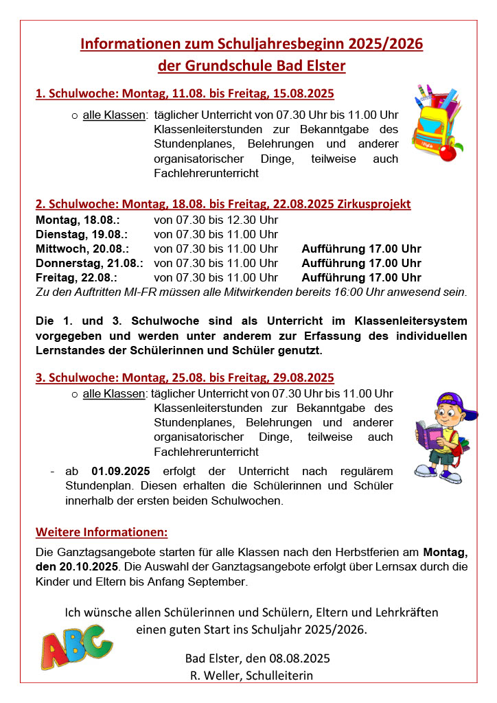 bitte beachten Sie die folgenden Informationen zum Start ins neue Schuljahr: